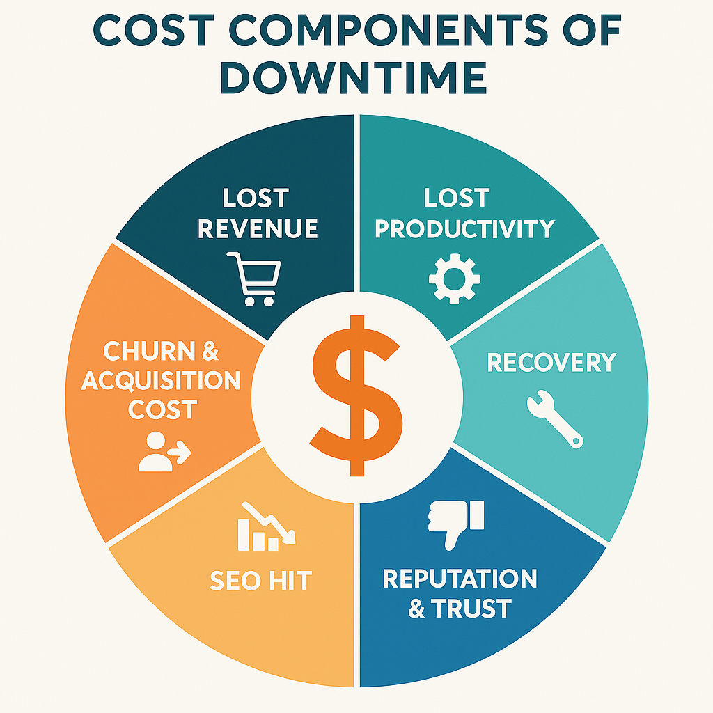 Website downtime isn’t just an IT problem — it’s a business risk. Whether you’re a six-figure business or a local service provider, the costs (direct and indirect) add up fast.