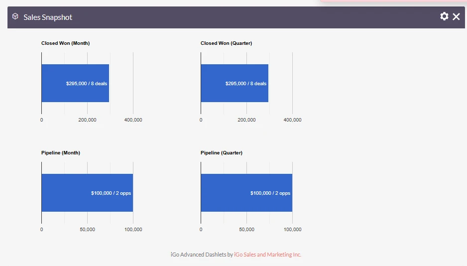 The Sales Snapshot Dashlet is the fastest way to answer one critical question: