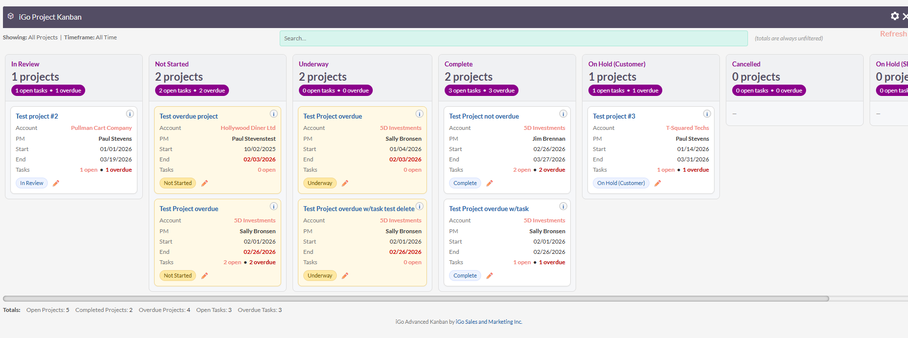 The Project Kanban board provides a clear visual overview of all active projects and their current stage.